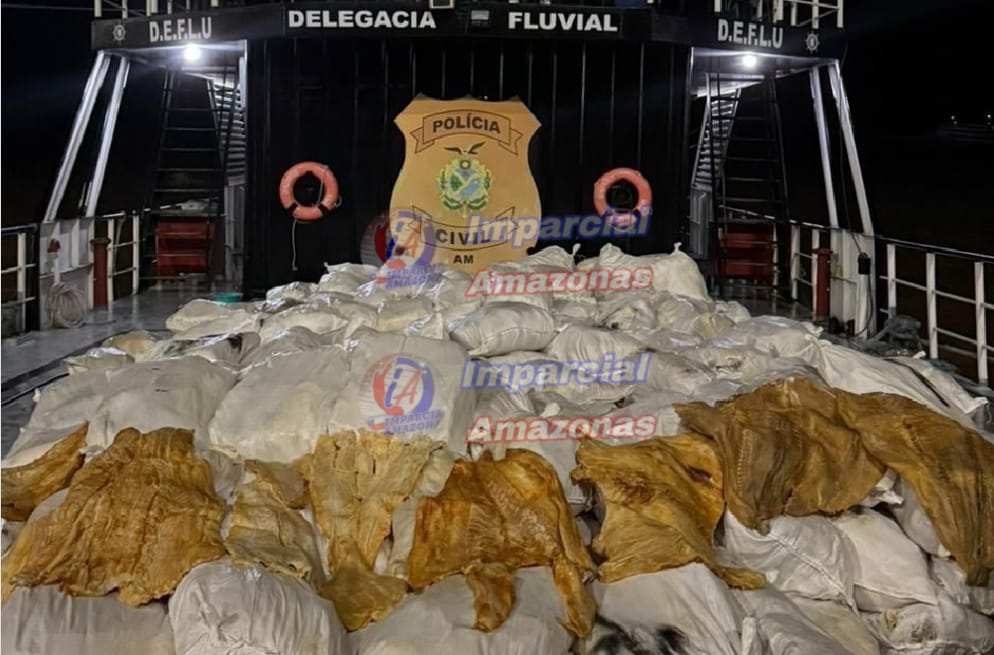 A Polícia Civil do Amazonas (PC-AM) apreendeu, na sexta-feira (09/01), cerca de 12 toneladas de pirarucu seco durante uma operação realizada na Base Fluvial Paulo Pinto Nery, nas proximidades do município de Itacoatiara, a 176 quilômetros de Manaus. O pescado estava sendo transportado em uma embarcação com destino à cidade de Parintins. Duas pessoas foram detidas por suspeita de crime ambiental.